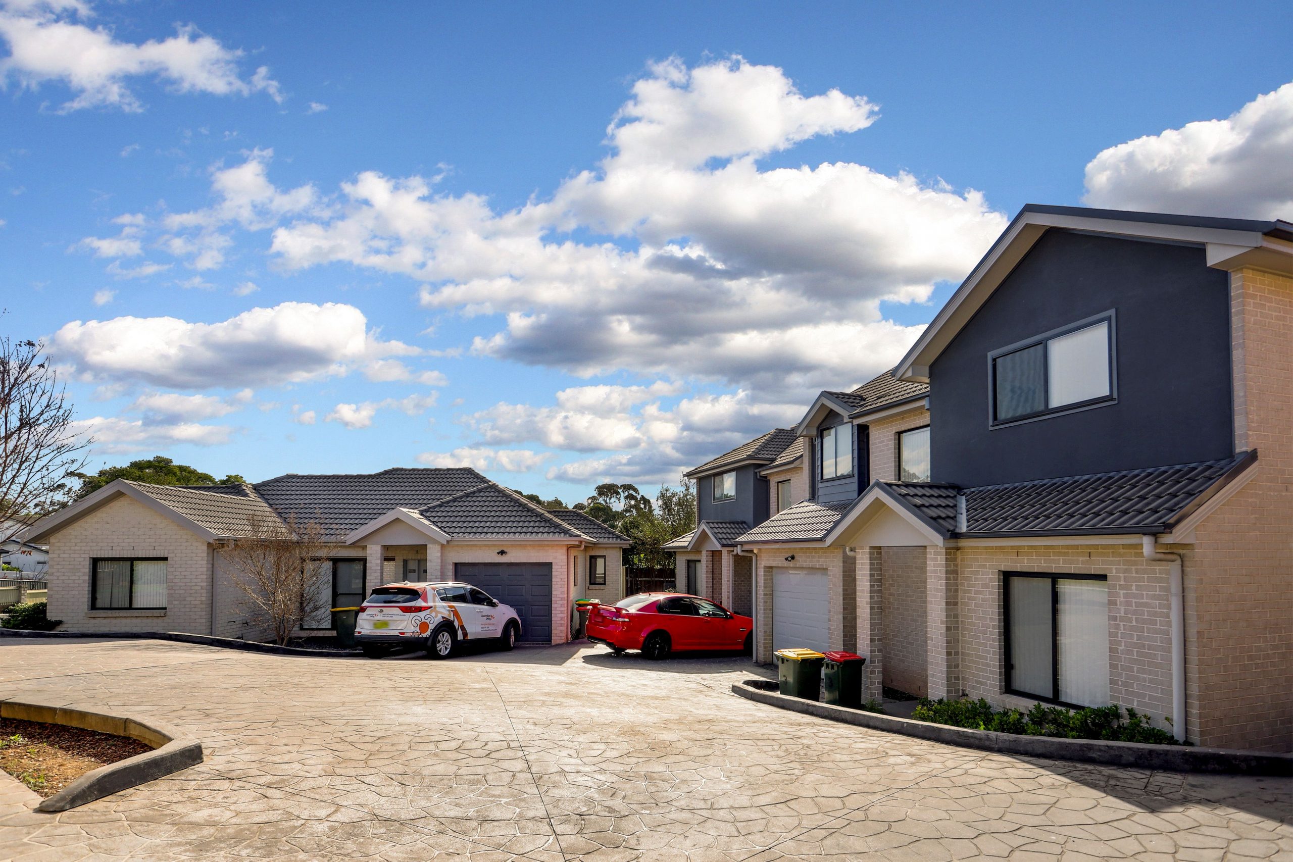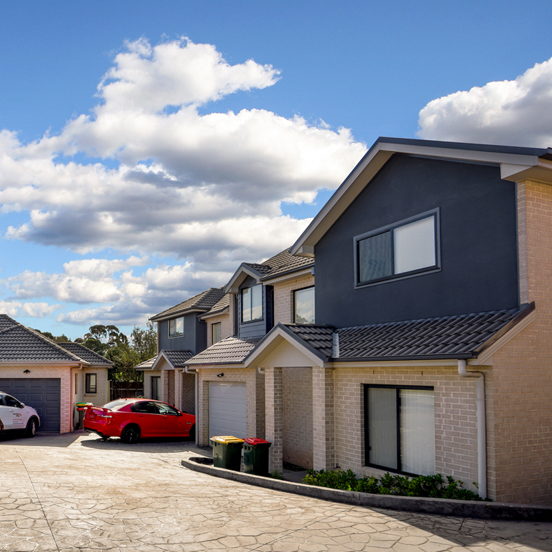 This block of townhouses completed by Sami building is a contemporary and versatile style. Featuring both double and single storey homes. All homes have access to natural daylight via the large accent windows included.