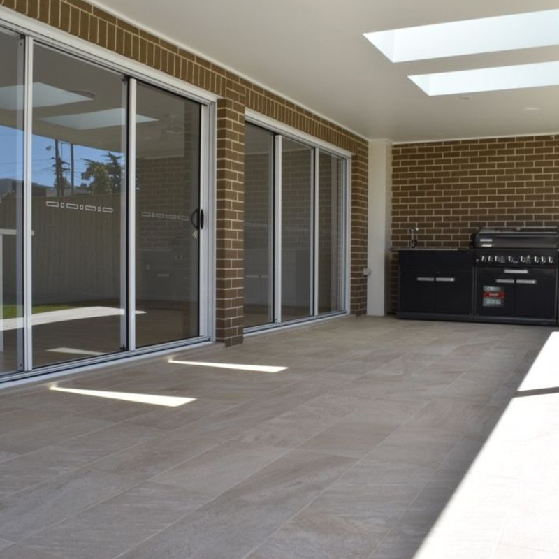 The outdoor area distinctively features skylights further opening up the home to natural daylight and accentuating the natural stone used.